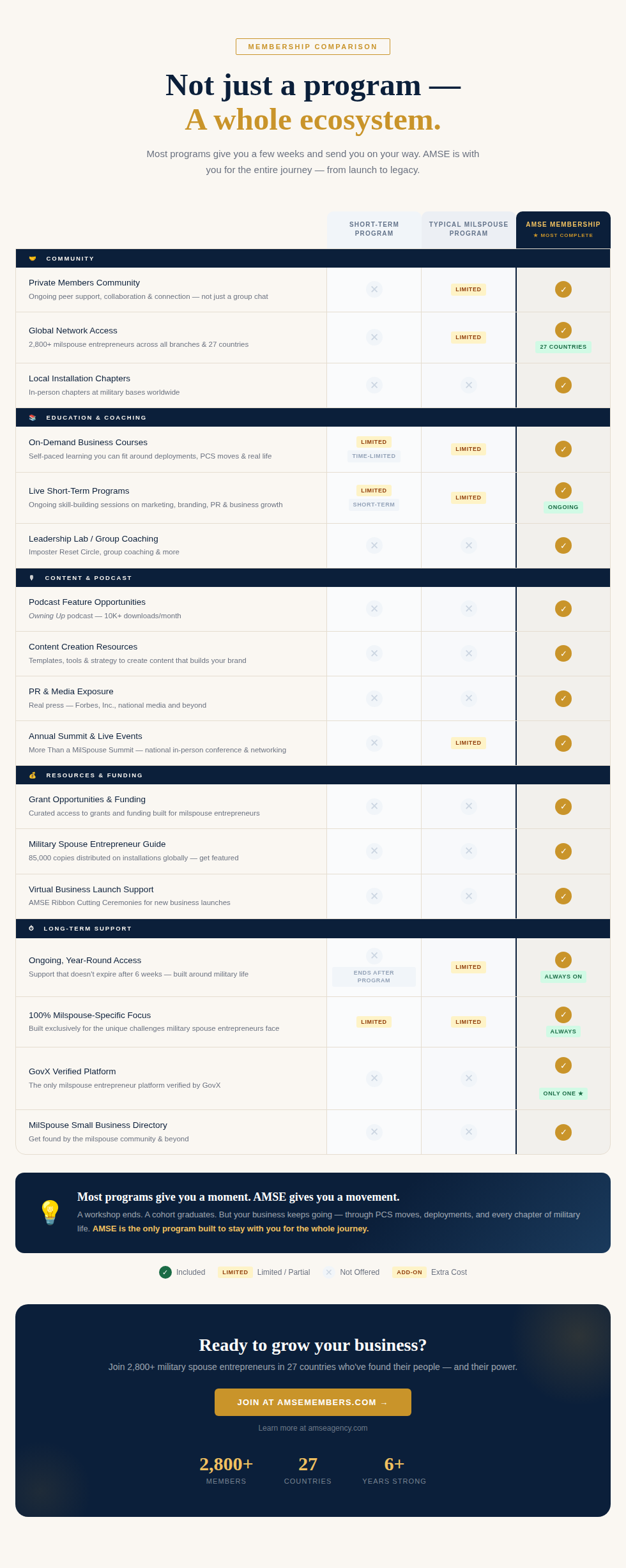 Association of Military Spouse Entrepreneurs® (AMSE™) connects Military Spouse business owners with the tools and resources needed to become successful in launching and growing their businesses. AMSE is an Exclusive Community for Military Spouse Entrepreneurs™ to Start, Scale, and Sustain their businesses.